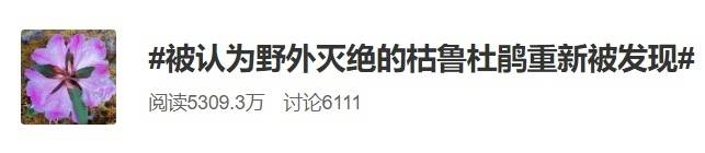 据人民日报和中新网报道,近日,中国科研人员在四川省凉山州野外考察过程中重新发现已被宣布野外灭绝的枯鲁杜鹃。