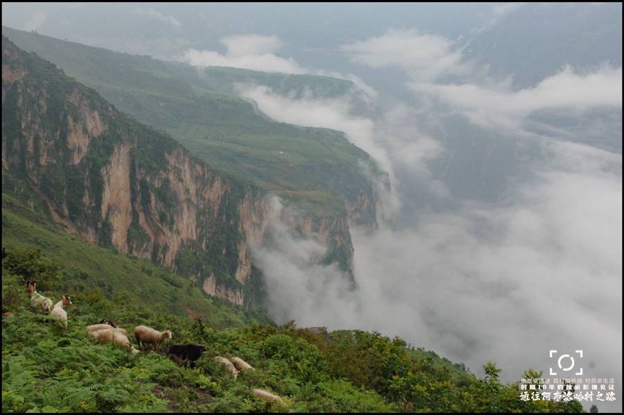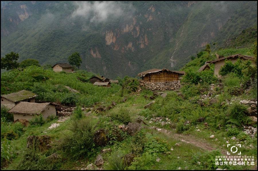 ●过去进出阿布洛哈村的通道就是一条垂直落差近2000米,最强壮的汉子徒步上坡最快也要4小时的悬崖羊肠路。拍摄于2007年7月12日