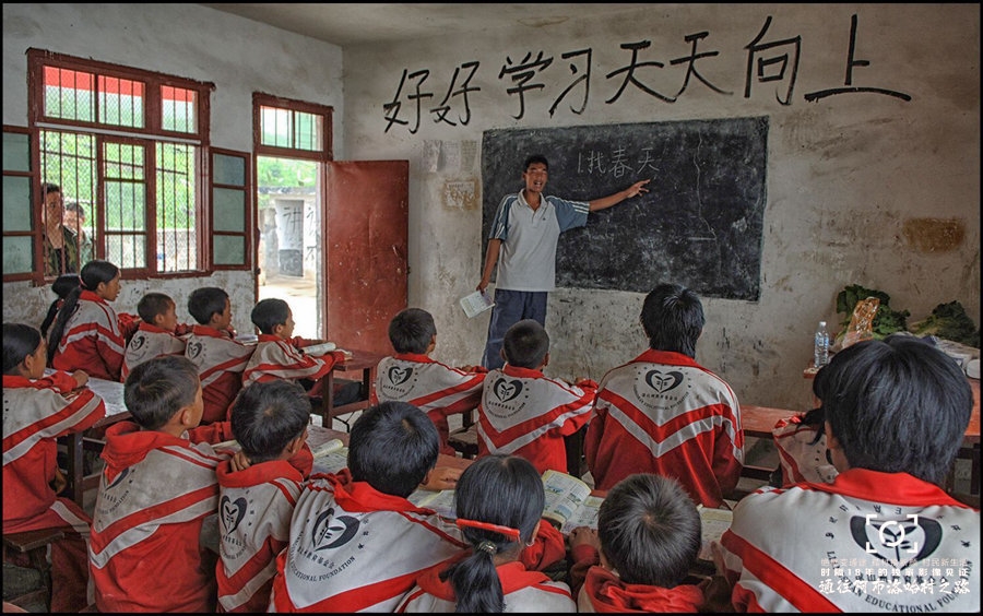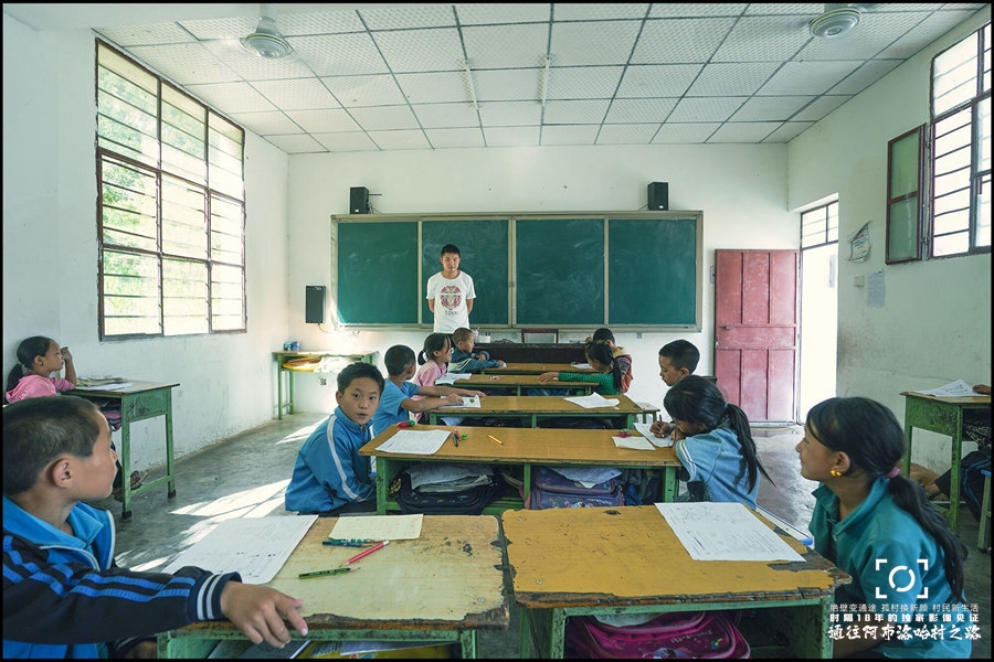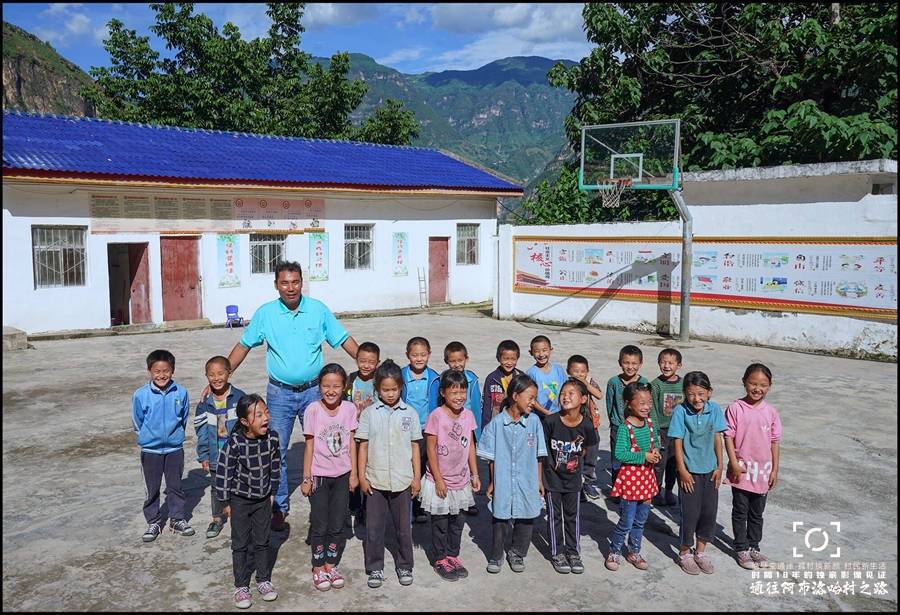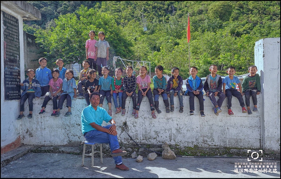 ●阿布洛哈小学校长拖觉色子和二级年小学生在旧校舍。拍摄于2020年6月24日