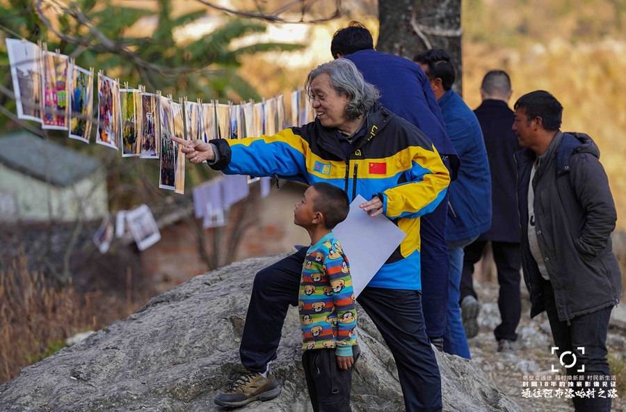 ●关注这里16年的四川著名摄影师林强再次来到阿布洛哈村,他们在村上举办了一场《16年变迁》的影展。在村口的一棵大树下,上百张关于村子变化的照片被展出,村小学的孩子和不少村民都来观展。拍摄于2020年1月