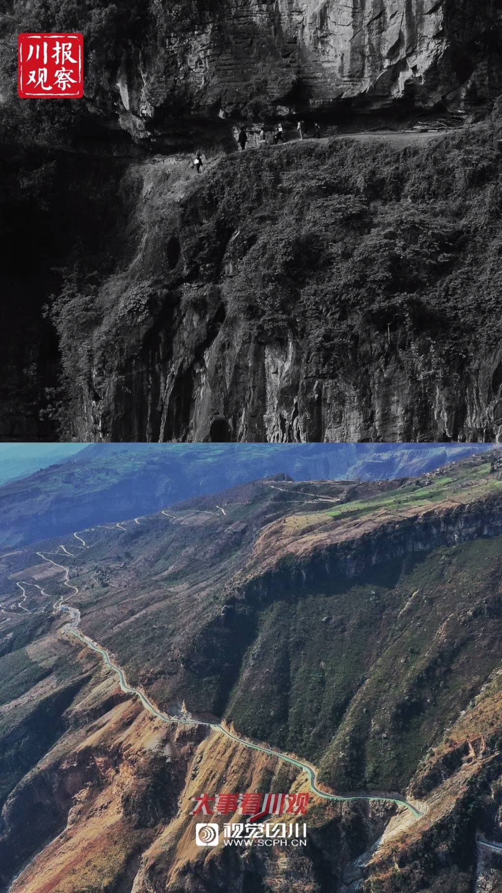 这里三面环山、一面临崖,曾经进出村子至少需要徒步4个小时,走过悬崖绝壁上的碎石路。如今“车路双通”,从村口坐客车40分钟就能到乡里。