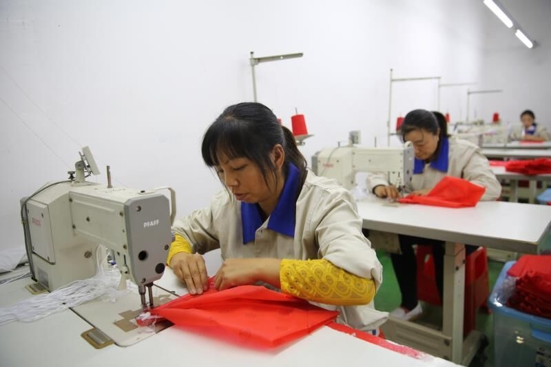 五粮液对口帮扶兴文县,扶贫车间里当地农户实现家门口就业。 袁党予 摄