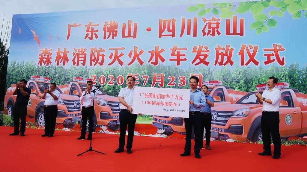 今年,凉山州木里县、西昌市等地发生森林火灾后,佛山市委、市政府于4月1日第一时间发出慰问信,转达广东省委、省政府和全省人民对凉山州委、州政府和凉山州人民的关切和慰问,并专门划拨3000万元支援凉山州抢险救灾。凉山州委、州政府决定利用佛山捐赠资金采购100辆森林消防灭火车和应急指挥车,提高凉山州消防应急救援能力。