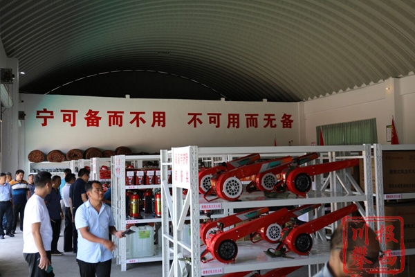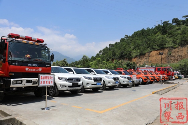 在德昌县专业扑火队伍驻地操场上,傈僳族专业打火队队员着装整齐、精神抖擞,排着整齐的队列接受现场观摩。运兵车、电力保障车、消防水车、消防救援车、指挥通讯等各式各样的森林草原防灭火装备一应俱全。在战备物资存放室,“宁可备而无用,不可用而无备” 的标语格外醒目,个人防护装备、单兵作战装备等物资摆满了货架。据介绍目前存储的物资达到了500万元的标准。
