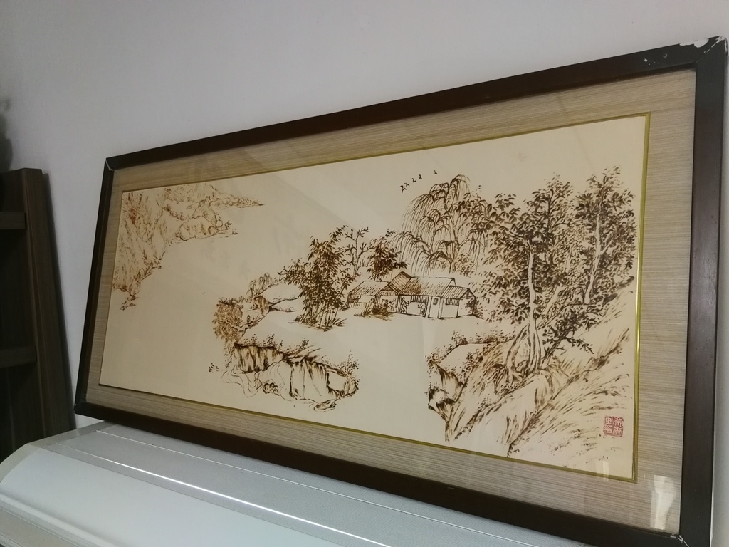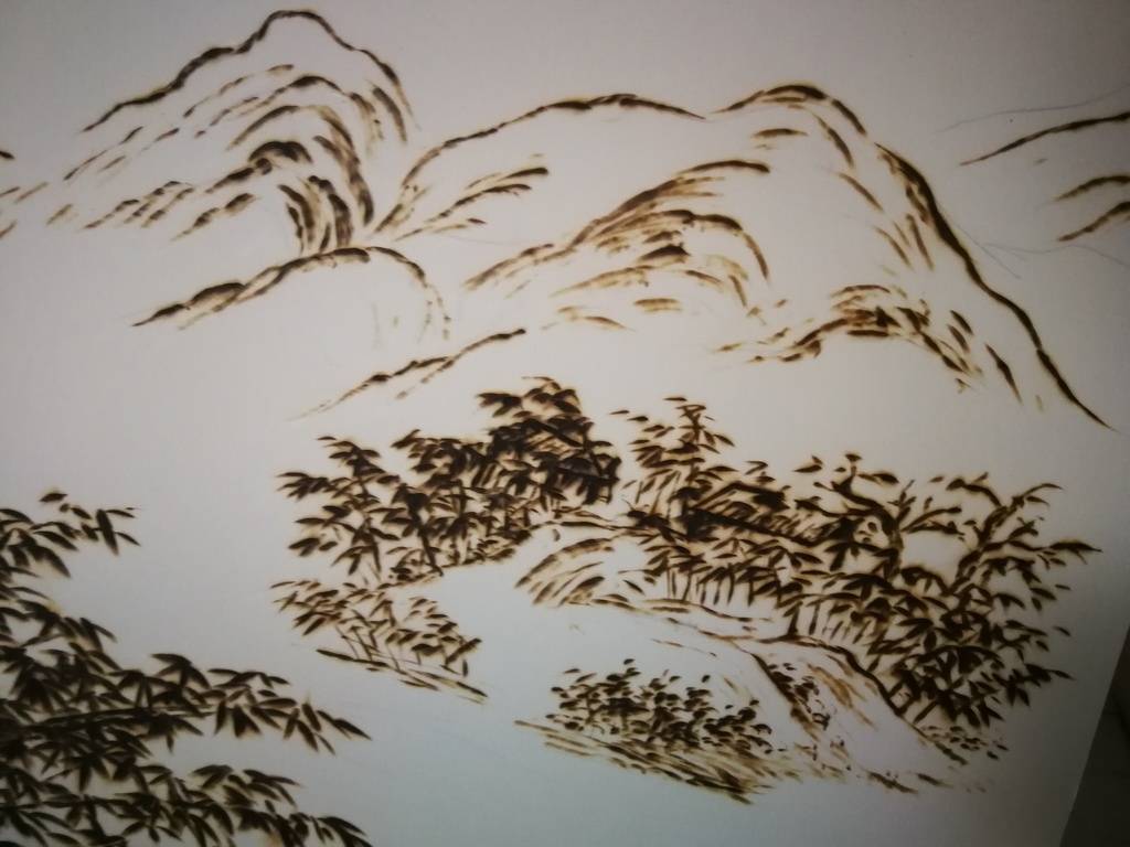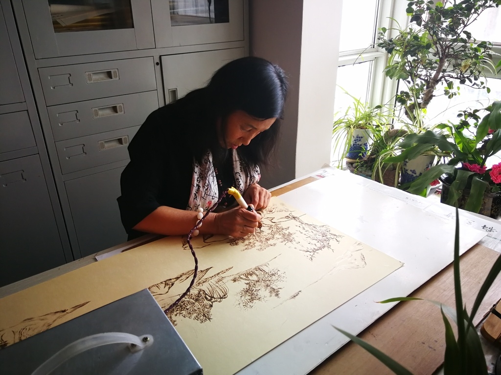 高崇秀的火绘作品创作时间短则需要半个月,长的则需要两个多月。她说,从构思到创作,她都要认真地推敲,自己的火绘作品想表达出怎样的意境,需要使用横幅还是条幅的纸张、需要多大尺寸,再到山水、人物等需要画在画纸上的哪个位置、比例多大等,都是需要经过长时间的思考斟酌。