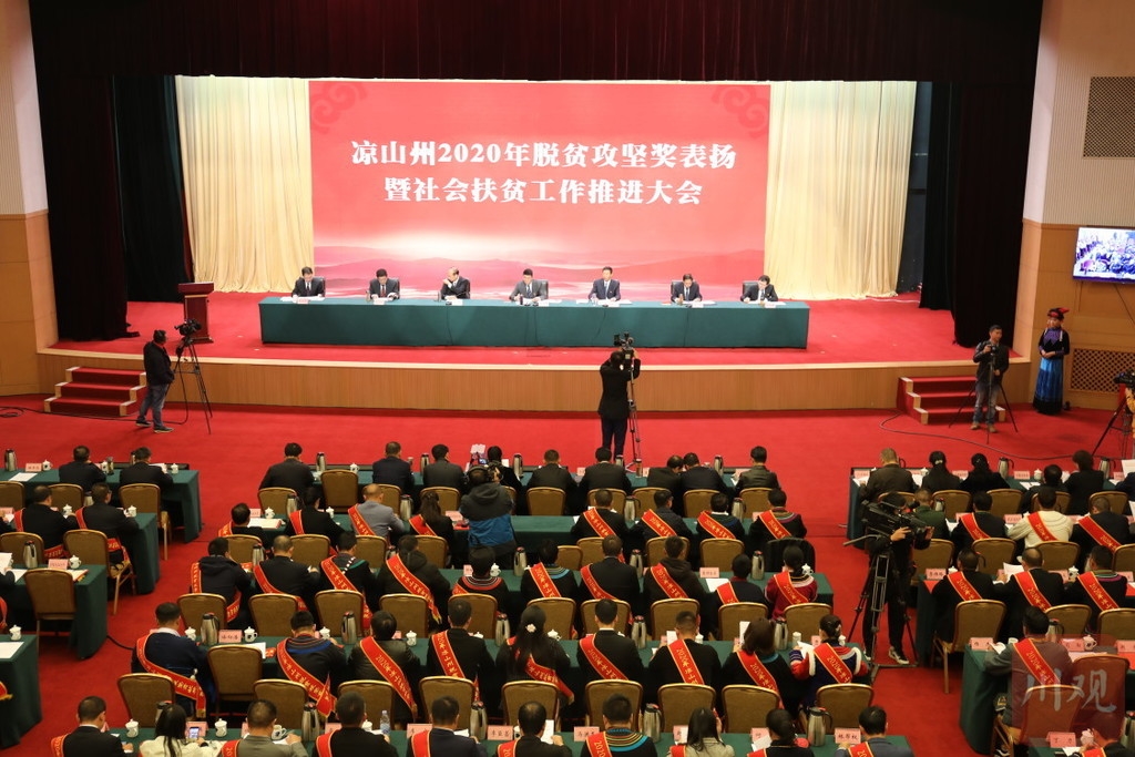 2020年10月17日是我国第7个扶贫日,也是第28个国际消除贫困日。当天,凉山州召开2020年脱贫攻坚表扬大会,隆重表扬荣获2020年凉山脱贫攻坚奖的先进集体和先进个人,其中,先进集体30个,先进个人130名,进一步激励全州广大干部群众咬紧牙关、一鼓作气打好脱贫攻坚总决战,广泛凝聚全社会力量,坚决夺取脱贫攻坚收官战全面胜利,确保与全国全省同步全面建成小康社会。