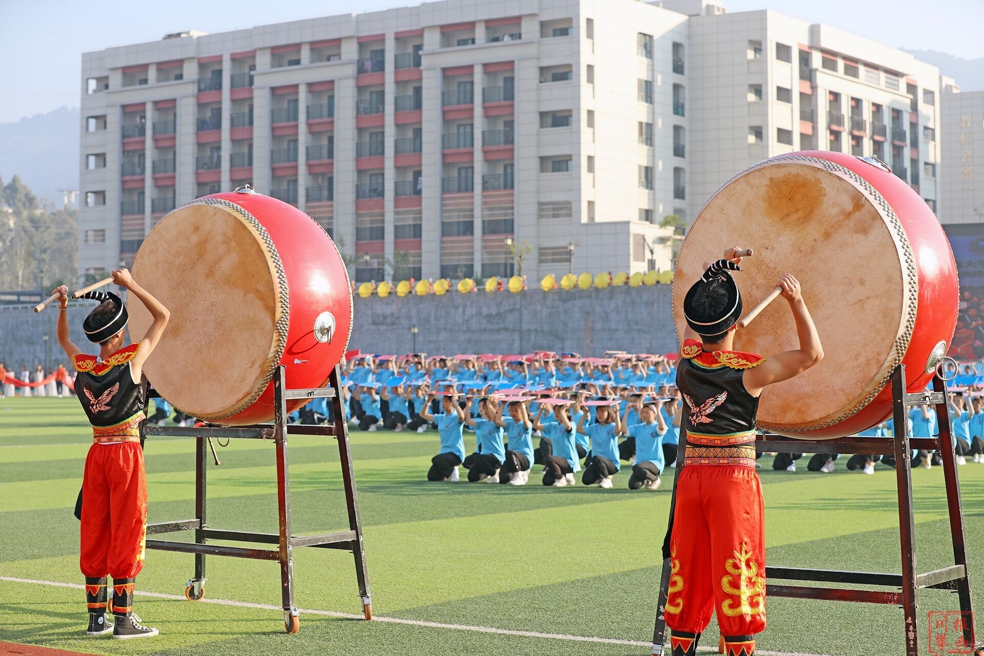 上午八时,操场上熙来攘往、热闹非凡。师生们早早地把校园装扮得五彩斑斓,彩绘的“雄鹰展翅看台”,井盖上的各种图案为这场校园盛会“锦上添花”,校园里无处不弥漫着浓浓的文化节气氛。据悉,学校成立至今刚好1065天,倒计时方阵由1065名学生组成,配合着鼓点完美地呈现出了倒计时十个数字的字样。