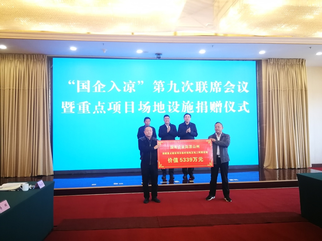 会议还举行了现场捐赠仪式,国有企业向凉山州捐赠了价值5339万元的重点建设项目临时场地及地上附属设施。