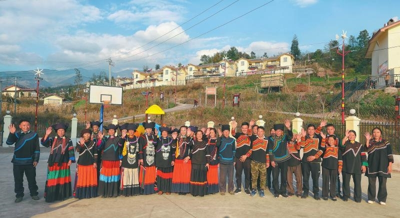 十一月十三日午后,凉山州美姑县龙门乡塔哈村,三十多名群众欢聚在新居前。去年九月,塔哈村易地扶贫搬迁项目全部建成,村民搬入花园式的两层小楼。四川日报全媒体记者尹钢摄