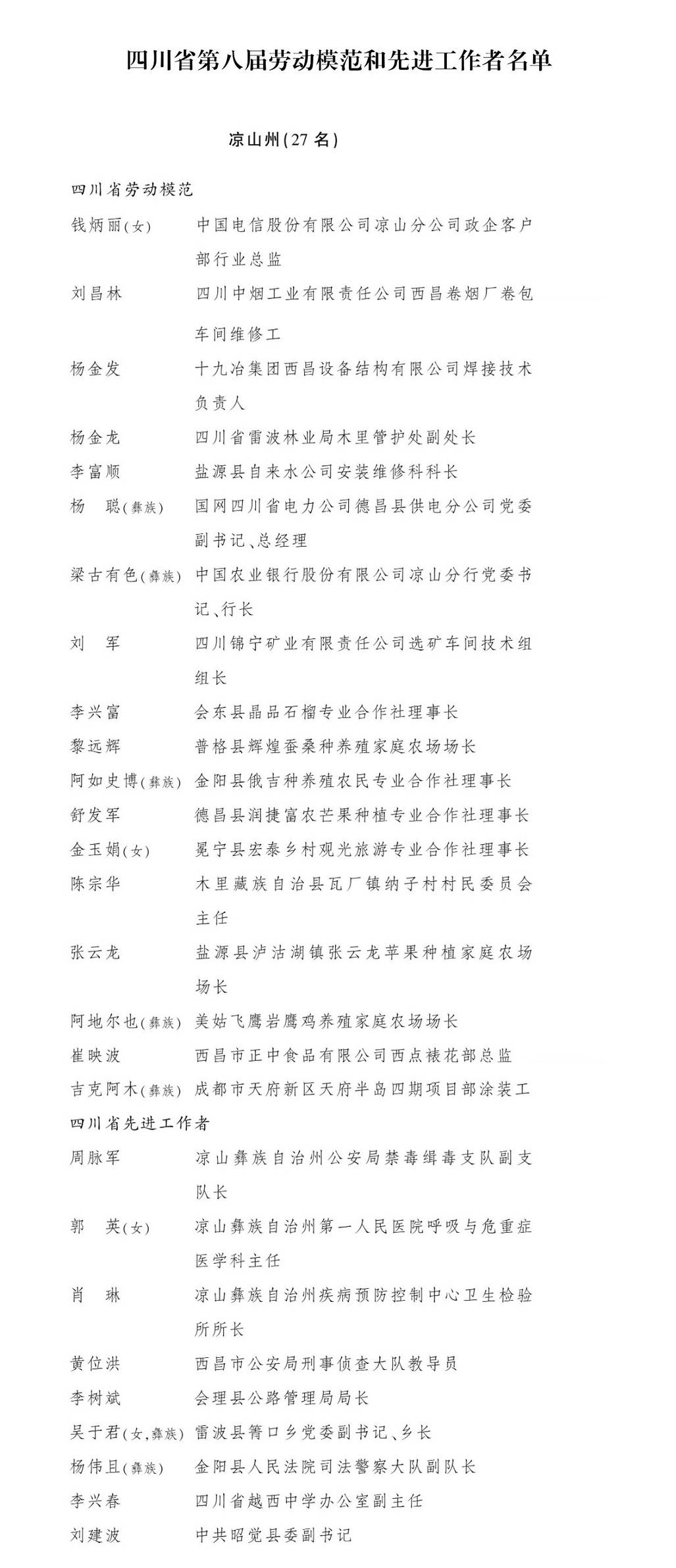 决定指出,2015年以来,全省各条战线的劳动者在推进实施省委“一干多支、五区协同”“四向拓展、全域开放”战略部署、推动四川高质量发展、坚决打赢新冠肺炎疫情防控阻击战中,涌现出一大批品德高尚、业务精湛、贡献突出的劳动者。为表彰他们的突出贡献,弘扬劳动光荣的社会风尚和精益求精的敬业风气,激励和带动全省各族人民共做新时代的奋斗者,省政府决定授予王从亮等519人“四川省劳动模范”称号,授予李晓静等279人“四川省先进工作者”称号。
