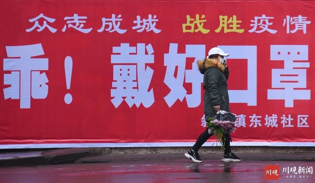 2月8日,泸州市叙永县东城社区,“乖!戴好口罩”的防疫标语让市民倍感温馨。川观拍客 李欣 摄