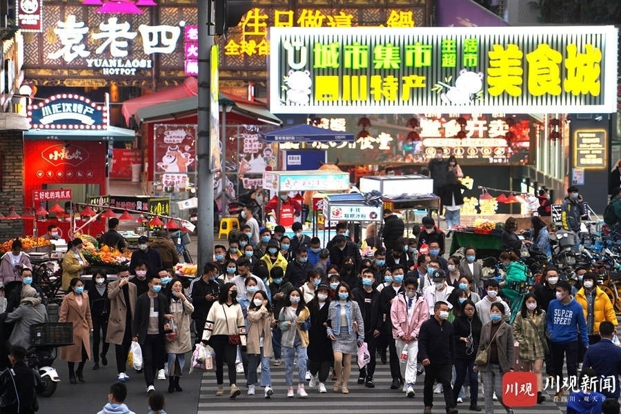 2020年4月5日成都,疫情下的夜经济逐渐放宽,成都街头有现熙熙攘攘。四川在线记者 华小峰 摄