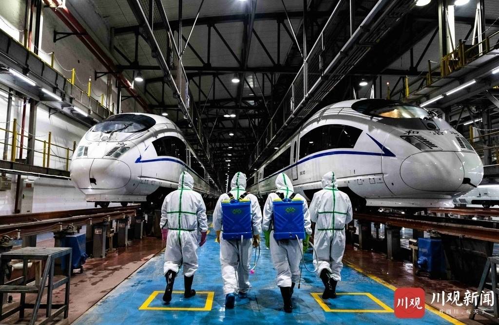 2月12日,准备机车消毒作业的中国铁路成都局集团公司疾控所消毒人员。川观拍客 段冲 摄