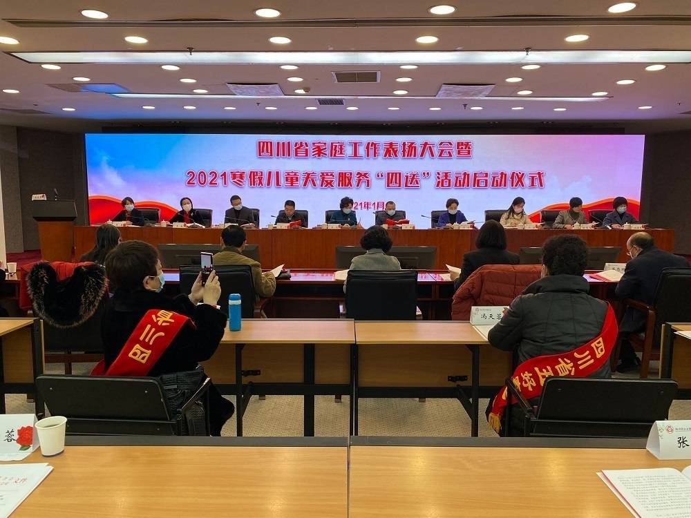 1月8日,四川省家庭工作表扬大会暨2021寒假儿童关爱服务“四送”活动启动仪式在成都市举行。