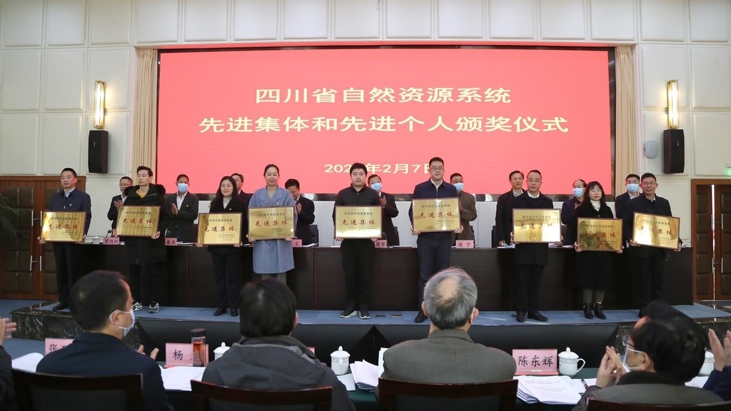 2月7日,四川省自然资源厅在年度工作会上为100个集体颁发“四川省自然资源系统先进集体”奖牌,为200名自然资源系统职工颁发“四川省自然资源系统先进个人”证书。