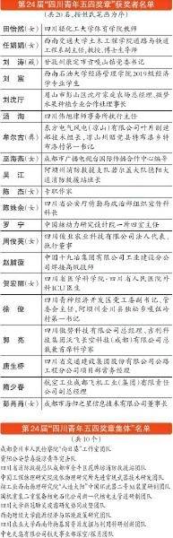 本报讯(四川日报全媒体记者吴浩)4月28日,记者从共青团四川省委获悉,在“五四”青年节来临之际,共青团四川省委、四川省青年联合会决定,授予田怡然等20名个人第24届“四川青年五四奖章”、成都崇州市人民检察院“向日葵”工作室团队等10个集体第24届“四川青年五四奖章集体”。他们积极奋战在疫情防控和经济社会发展一线,在四川决战脱贫攻坚、决胜全面小康的生动实践中发挥了生力军和突击队作用。
