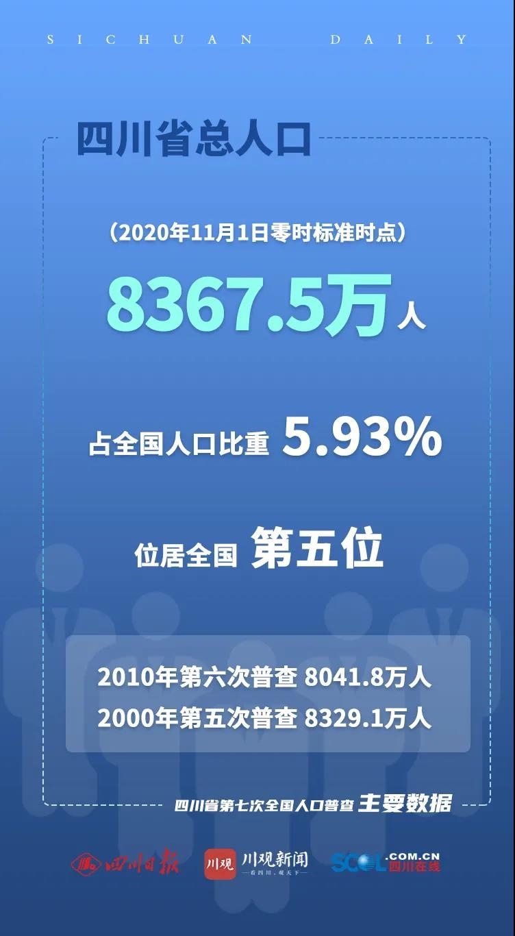 普查结果显示,四川共有家庭户3075.6万户,家庭户人口为7709.3万人;集体户144.9万户,集体户人口为658.2万人。平均每个家庭户的人口为2.51人,比2010年的2.95少0.44人。