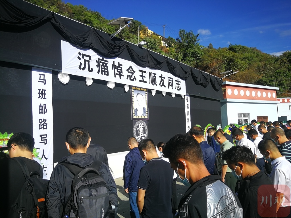 当天,邮政企业、凉山州、木里县相关单位,王顺友生前同事、好友等社会各界前来悼念王顺友,送他最后一程。