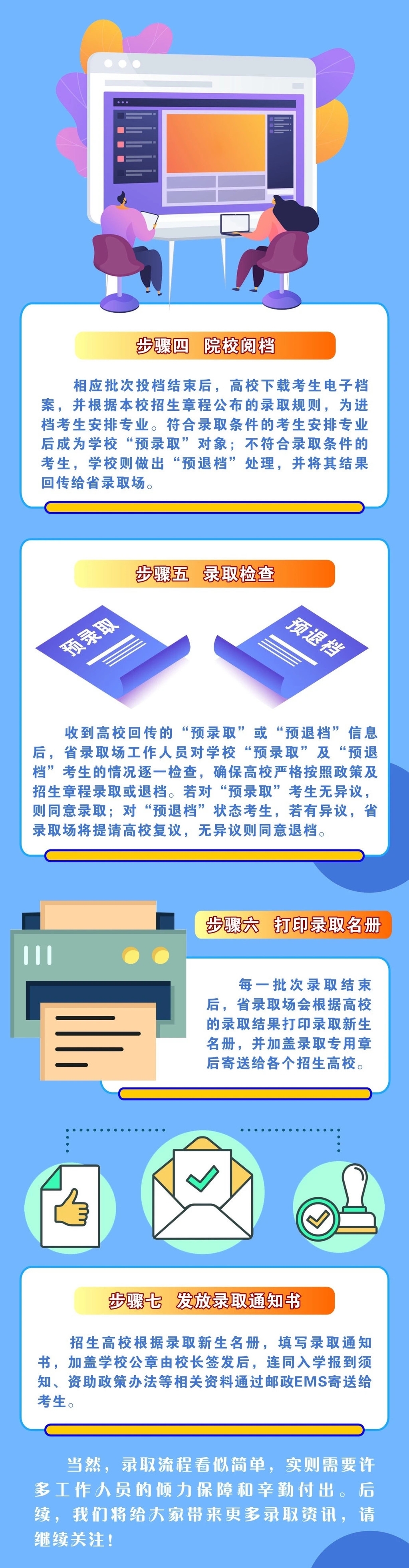 2021年普通高考招生录取工作已经全面展开,考生将陆续收到录取通知书。那么,高考录取到底是咋个整的?一共需要几步?