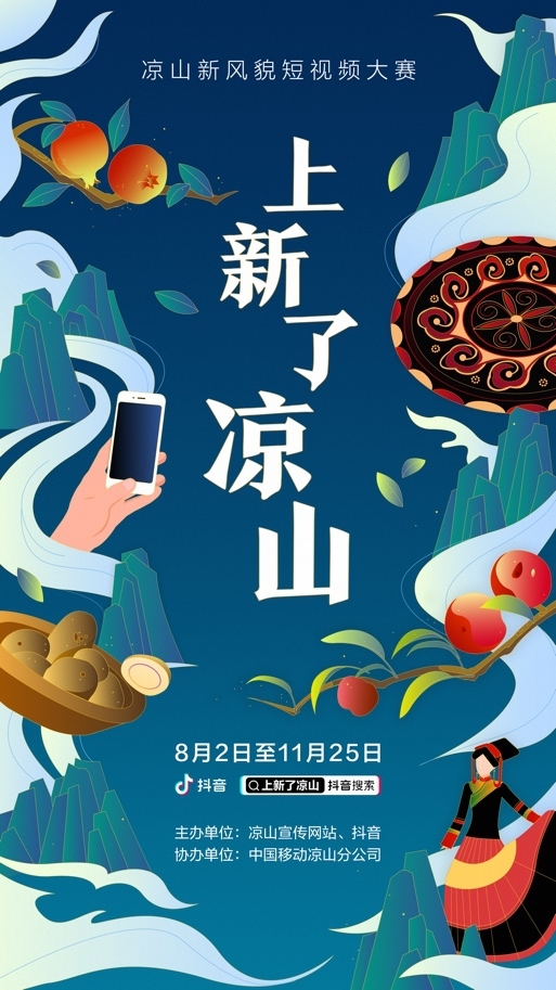 为更全面、直观展现凉山脱贫攻坚成果和乡村振兴工作,呈现凉山美景与新面貌、新发展,讲好凉山故事,2021年8月起,抖音四川联合凉山州开展“上新了凉山”抖音短视频大赛,面向凉山的网络红人、融媒体、抖音政务号、抖音短视频拍摄爱好者等广泛征集优秀作品,共同发现凉山之美、凉山之变,展示凉山人的精、气、神。