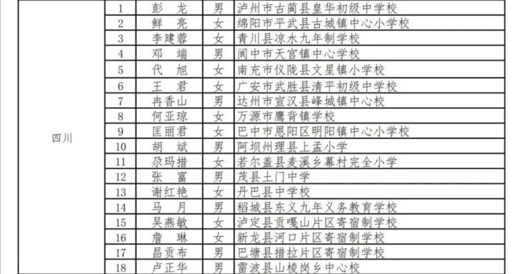 川观新闻记者梳理名单发现,四川共有18位教师入选,具体如下表——