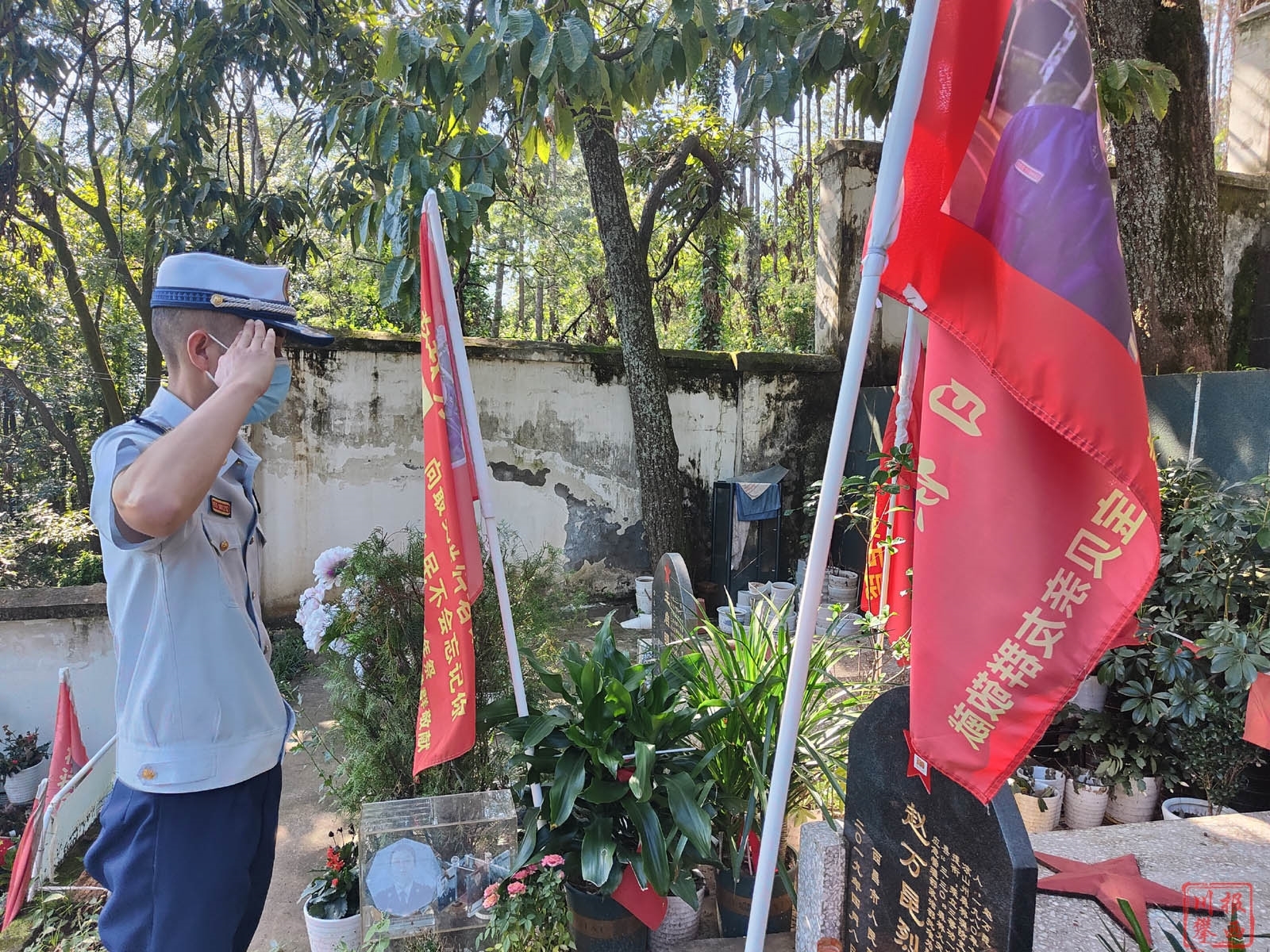 在陵园,凉山州森林消防支队西昌大队官兵手持菊花。在这里,长眠有他们痛失的战友——木里“3.30”森林火灾中壮烈牺牲的张浩、赵万昆。大队24人来到这里,三中队指导员吴永硕仔细擦拭战友墓碑,一束束鲜花,一个个标准的军礼,寄托着大家的哀思。
