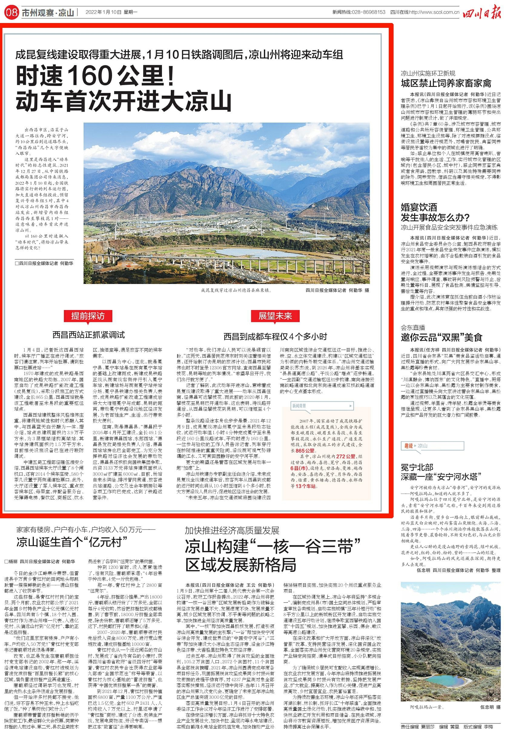 “未来五年,凉山在交通领域将围绕建设四川南向区域性综合交通枢纽这一目标,推进公、铁、空、水立体交通建设,构建以‘区域交通枢纽’为引领的内畅外联交通体系。”凉山州交通运输局局长苏杰说,到2026年,凉山州将基本实现“县县通高速公路”、干线公路“堵点”逐步畅通,“一主四副”交通运输枢纽初步构建,南向连接云南战略通道和北向东向连通成渝双核战略通道的中心支点基本形成。