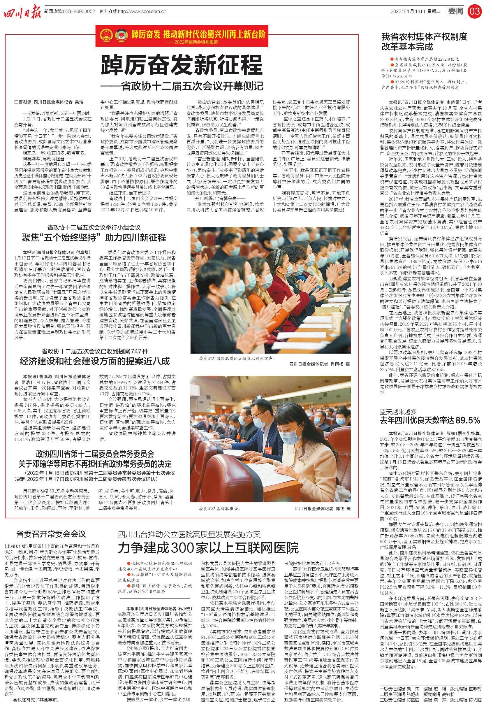 在今天出版的《四川日报》上,有五个版面刊载了省两会的报道,这些文章值得关注——