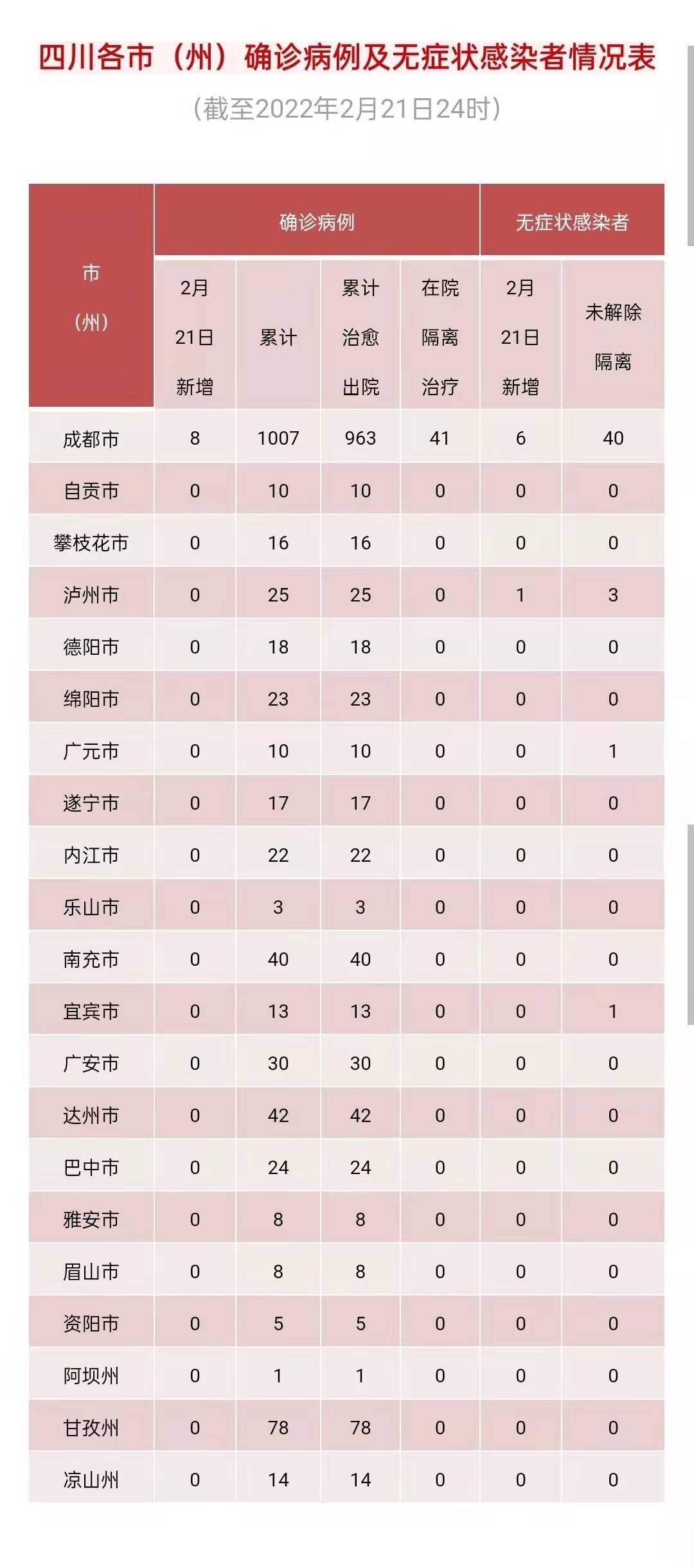2月21日0-24时,四川新增新型冠状病毒肺炎确诊病例8例: