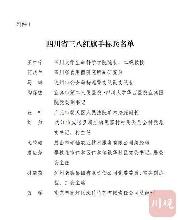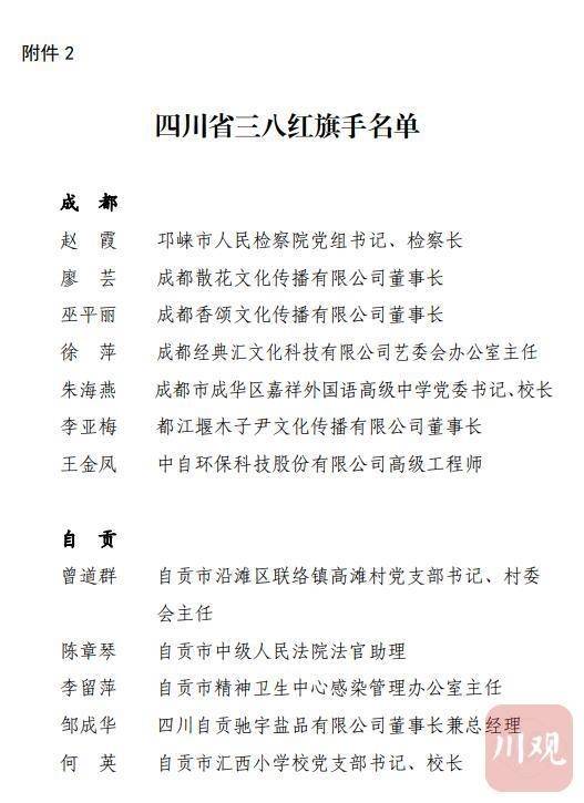 “三八”国际劳动妇女节前夕,3月7日,四川省妇联公布了2021年度四川三八红旗手标兵、三八红旗手、三八红旗集体全名单。