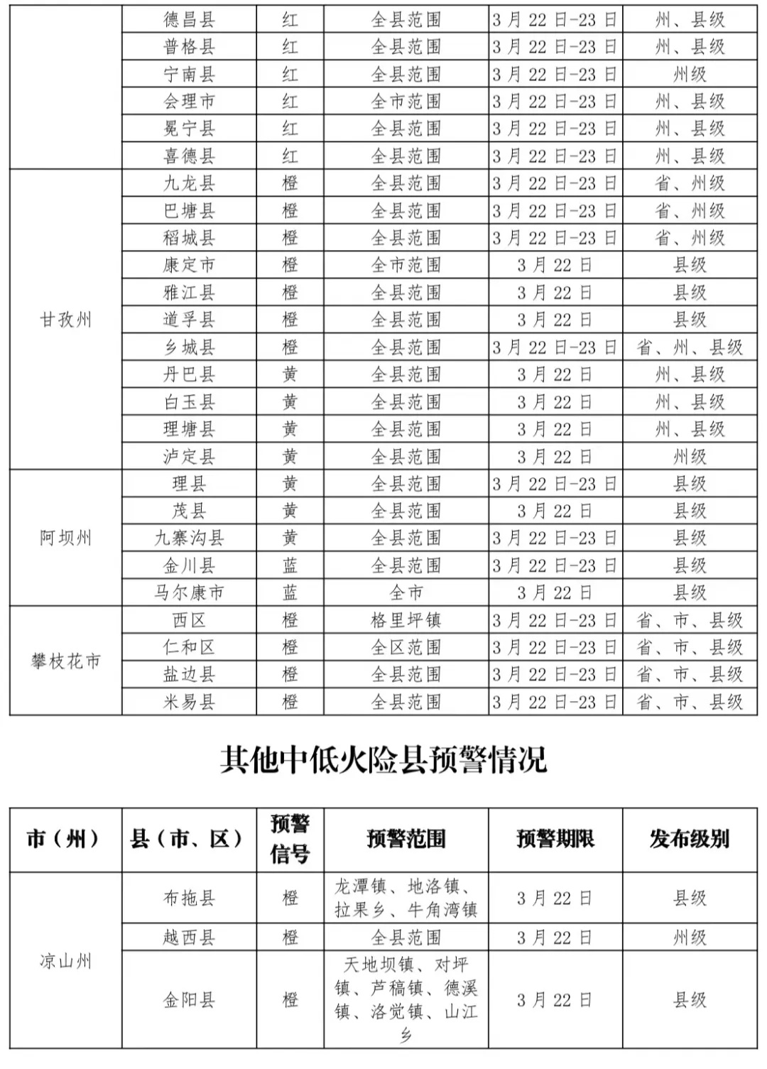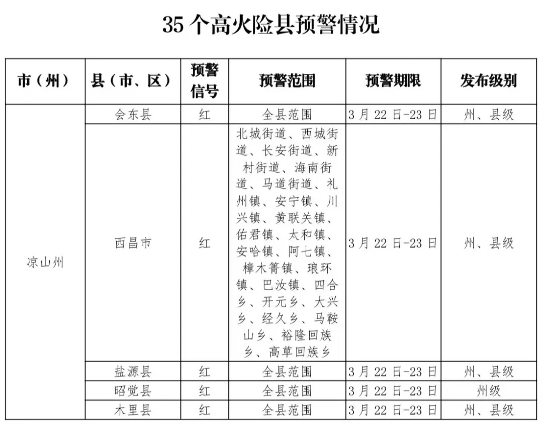 注意!凉山11县(市)森林草原火险红色预警,6县橙色预警