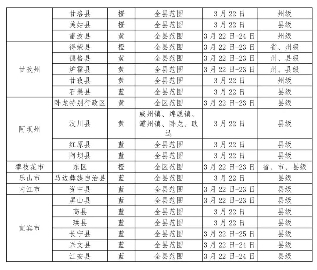 据四川省森林草原防灭火指挥部办公室消息,截至3月21日21时,全省县(市、区)森林草原火险预警信号数量为:红色11个,橙色18 个,黄色13个,蓝色13个。