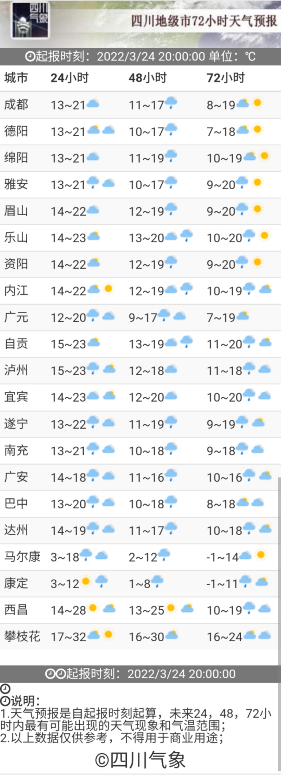 四川省气象台预计,未来三天,四川各城市天气预计是这样↘