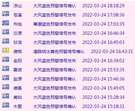 24小时内,四川多地大风蓝色预警信号生效中↘