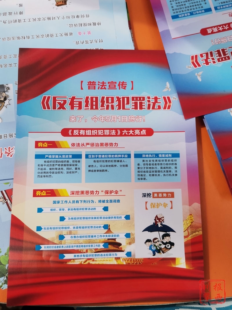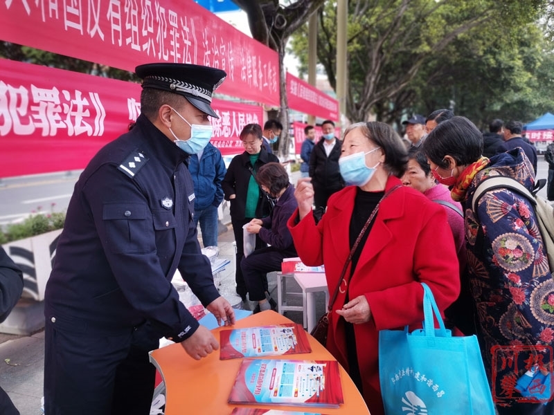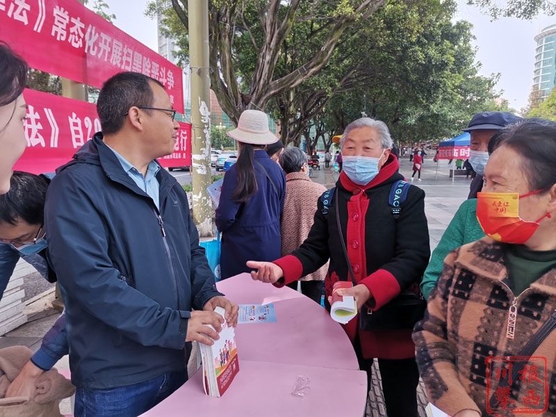 “大爷大妈,《中华人民共和国反有组织犯罪法》将于5月1日起施行,你们可以了解一下相关知识。”4月2日上午,凉山州委政法委、西昌市委政法委组织凉山州、西昌市公安局、司法局、教育局、扫黑办等相关部门,在西昌市月城广场开展《中华人民共和国反有组织犯罪法》现场宣传活动。