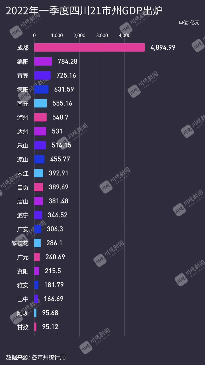 全省大盘下,各市州表现如何?川观新闻记者梳理了已经公布的21份市州一季度经济运行成绩单,从数据中寻找答案。