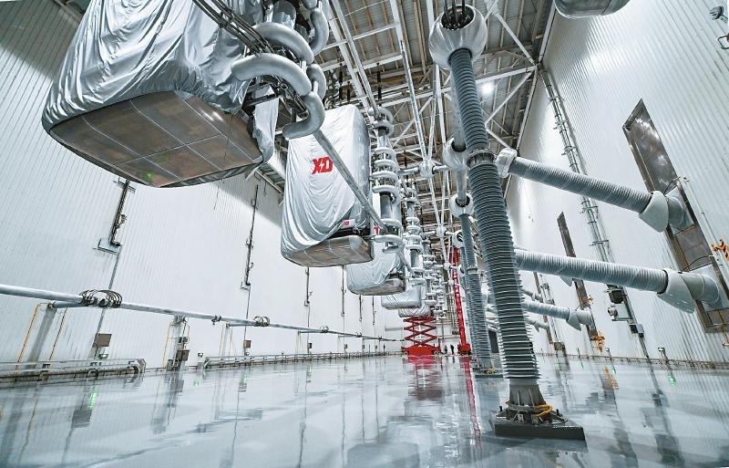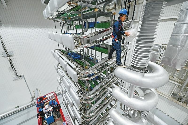 “空中组装”完成后,将对这颗“超级心脏”开展触发试验,这是换流阀安装过程中至关重要的一环,也标志着工程进入了阀厅设备安装的冲刺阶段。