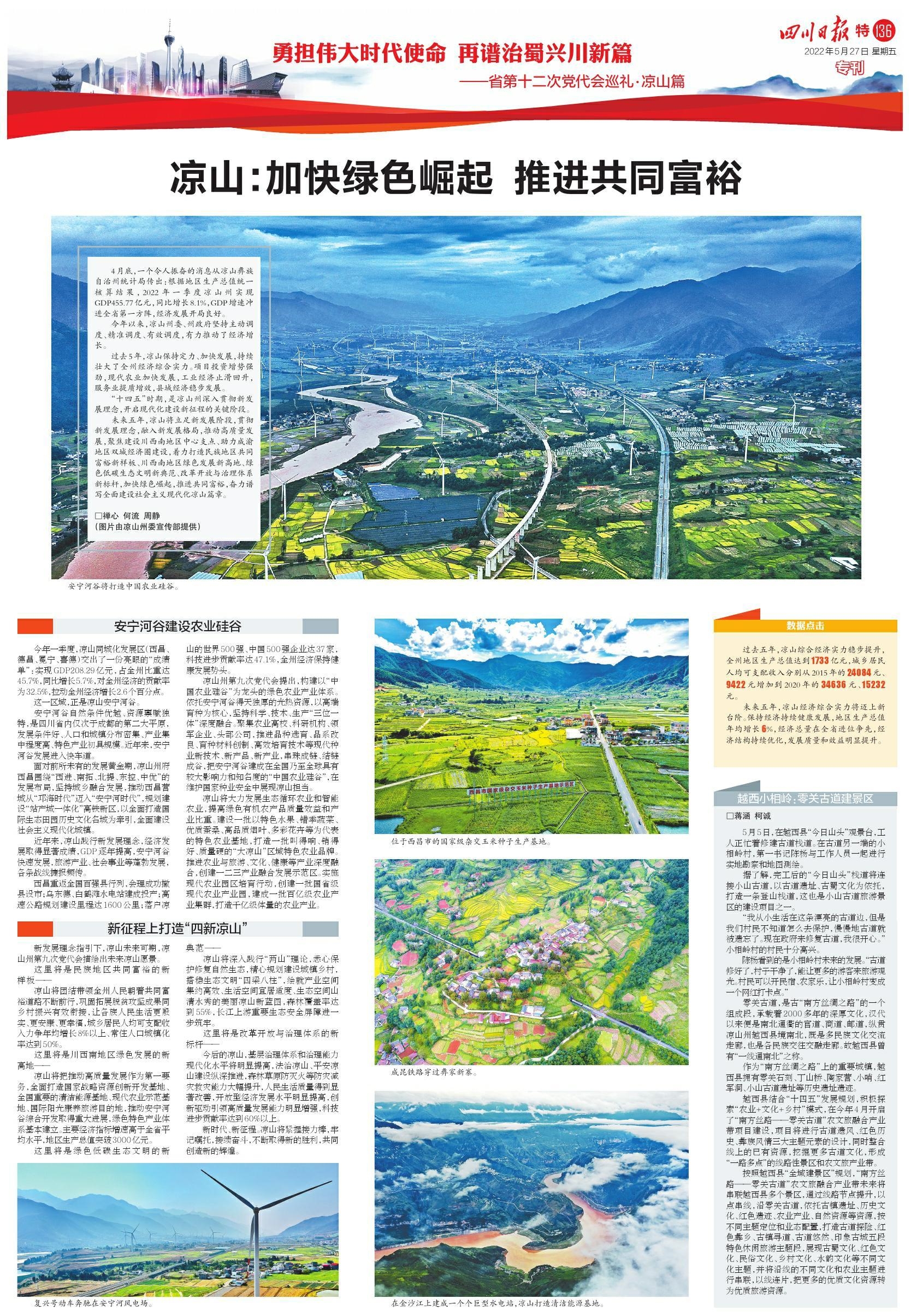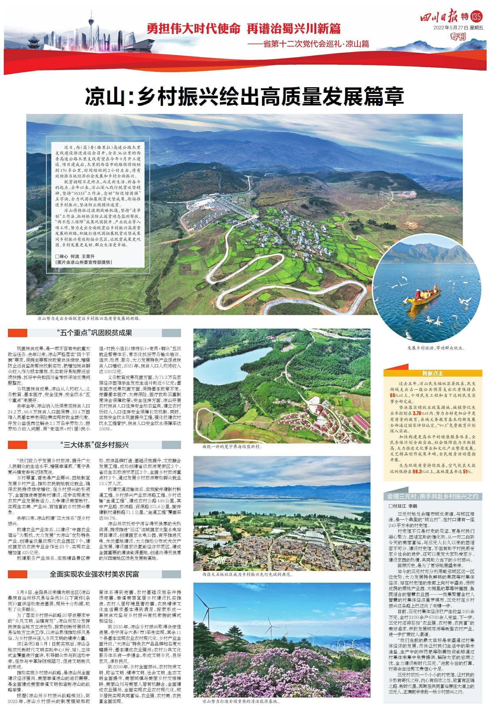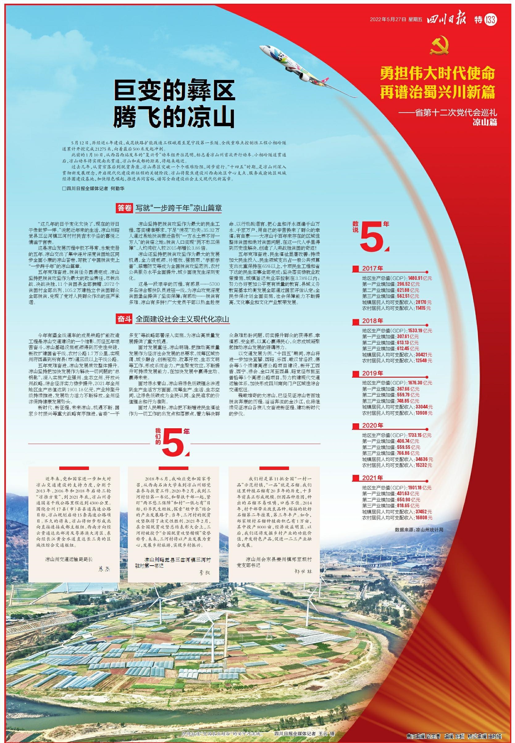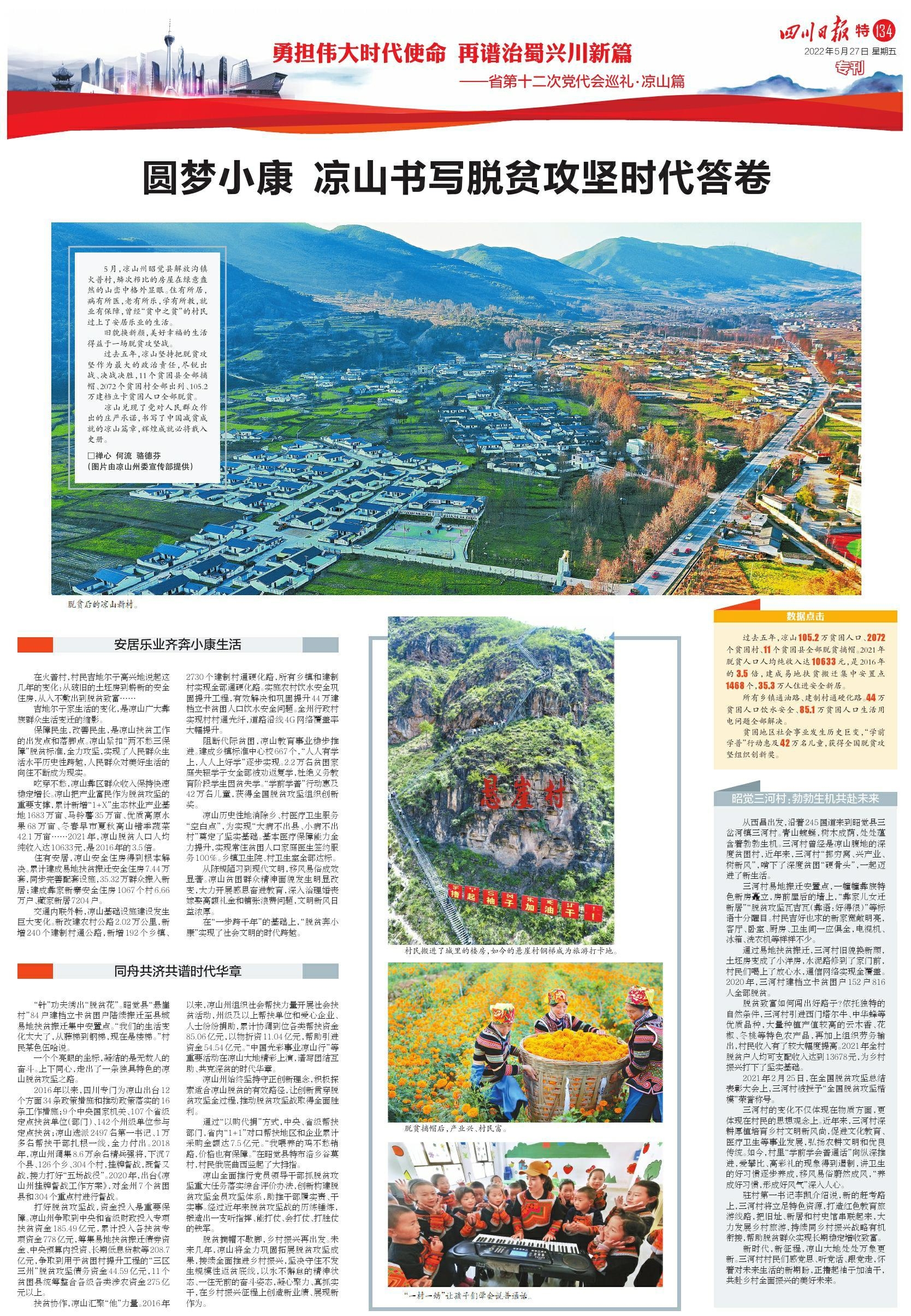 在这个特殊的日子里,《四川日报》以148个版(8个要闻版和140个特刊版)的宏大篇幅,献上五年兴川答卷。其中,5个整版聚焦凉山。这些版面,既关注凉山脱贫攻坚,又聚焦未来凉山乡村振兴发展;既从全州视角展现发展巨变,又精选出村庄发展的小切口。
