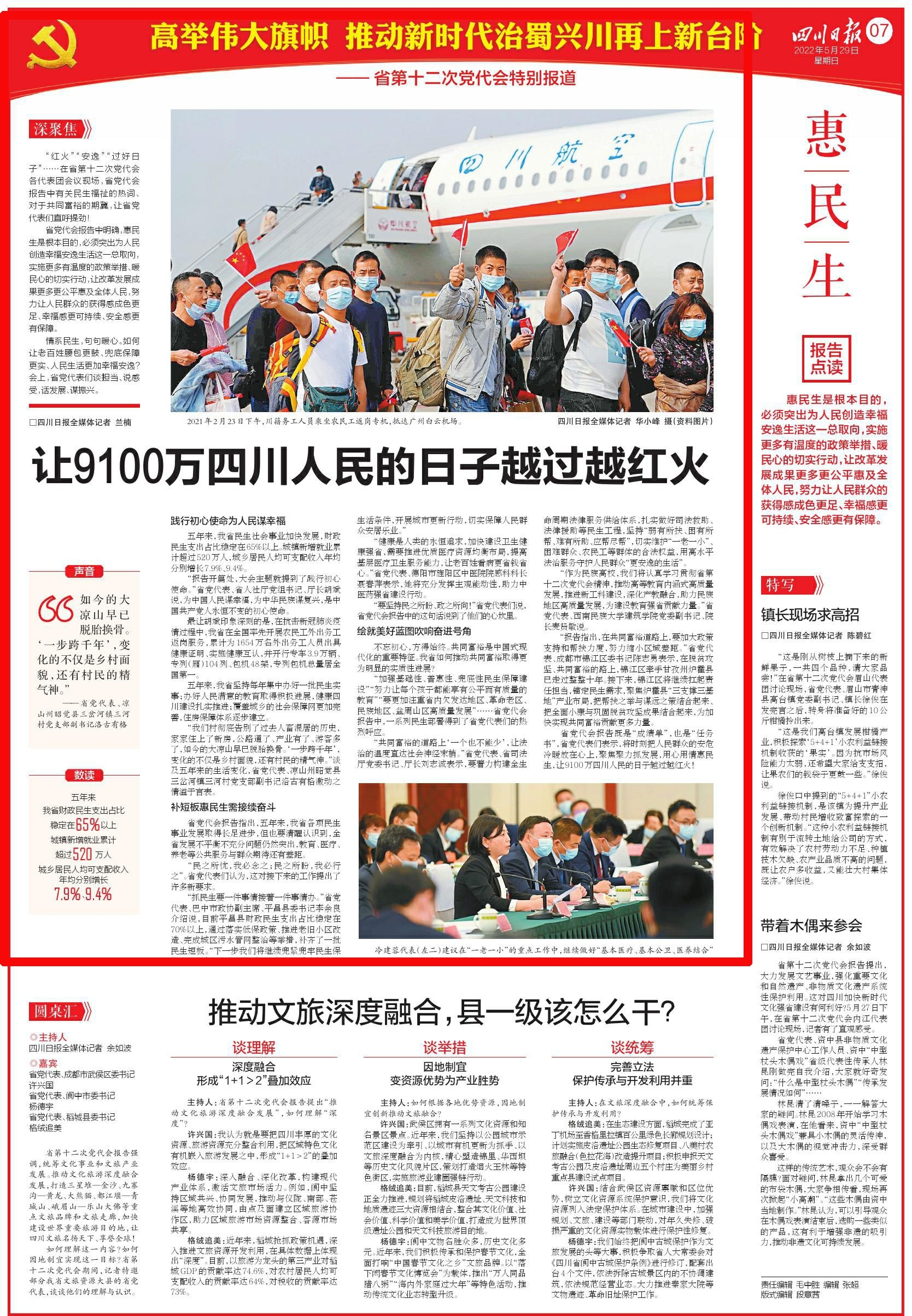 “加强基础性、普惠性、兜底性民生保障建设”“努力让每个孩子都能享有公平而有质量的教育”“要更加注重省内欠发达地区、革命老区、民族地区、盆周山区高质量发展”……省党代会报告中,一系列民生部署得到了省党代表们的热烈呼应。
