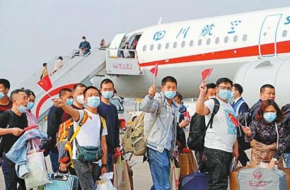 2021年2月23日下午,川籍务工人员乘坐农民工返岗专机,抵达广州白云机场。 四川日报全媒体记者 华小峰 摄(资料图片)