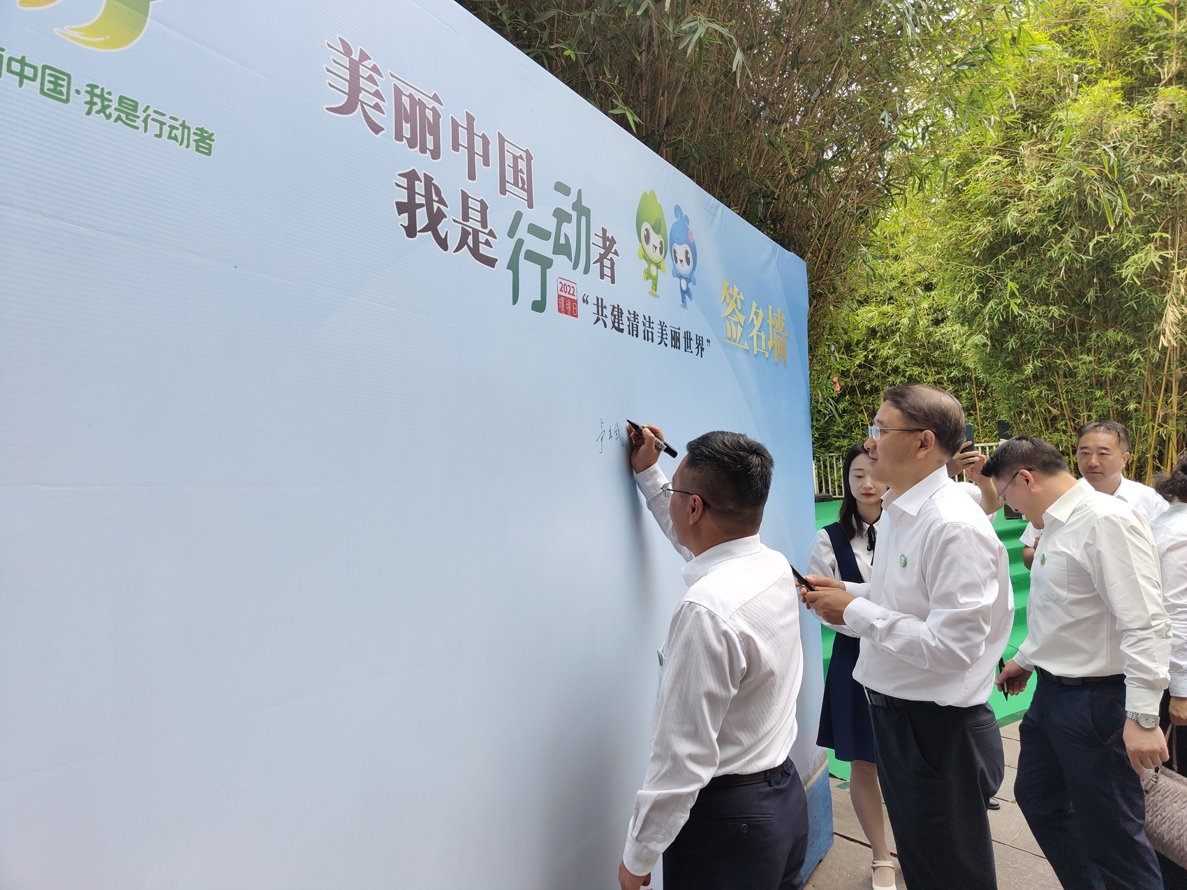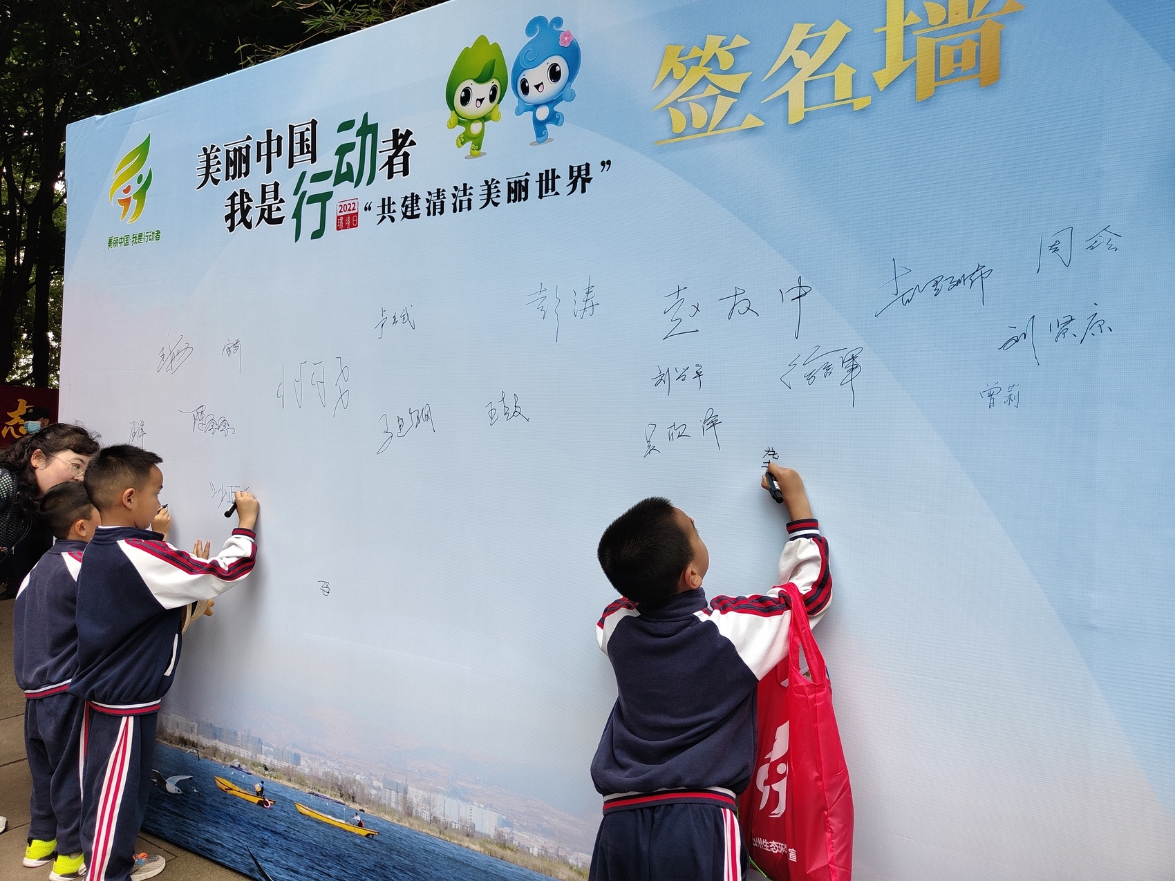 今年6月5日是第51个世界环境日。宣传活动播放了世界环境日主题启动宣传片,环保志愿者宣读《公民生态环境行为规范》,参与活动人员还在“美丽中国,我是行动者”签名墙上签名。活动当天正值六一儿童节,攀西幼儿园的部分小朋友来到这里,一些小朋友也主动签名。于向晗小朋友说,他们带了吃的来参加活动,结束后一定会把垃圾清理走,保护好邛海湿地的环境。