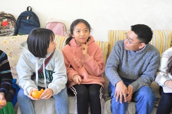 大学期间,苏正民多次前往凉山支教,图为他(右)在家访。