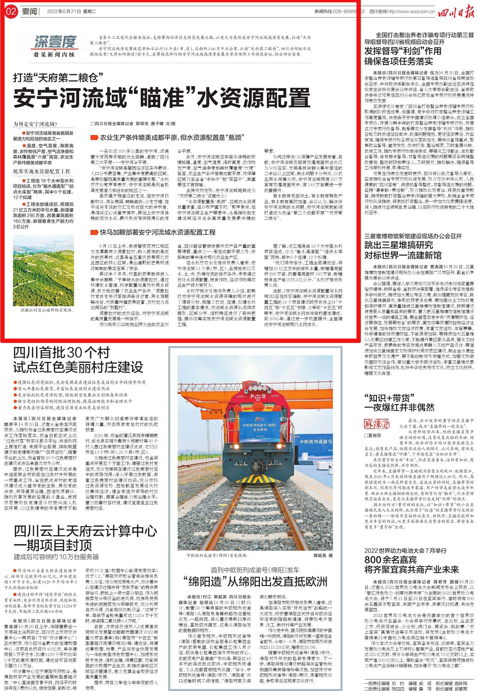 6月21日,《四川日报》2版刊发《安宁河流域“瞄准”水资源配置》,解读打造“天府第二粮仓”,四川为何把目光投向安宁河流域,又将如何推进?该文给出了答案。