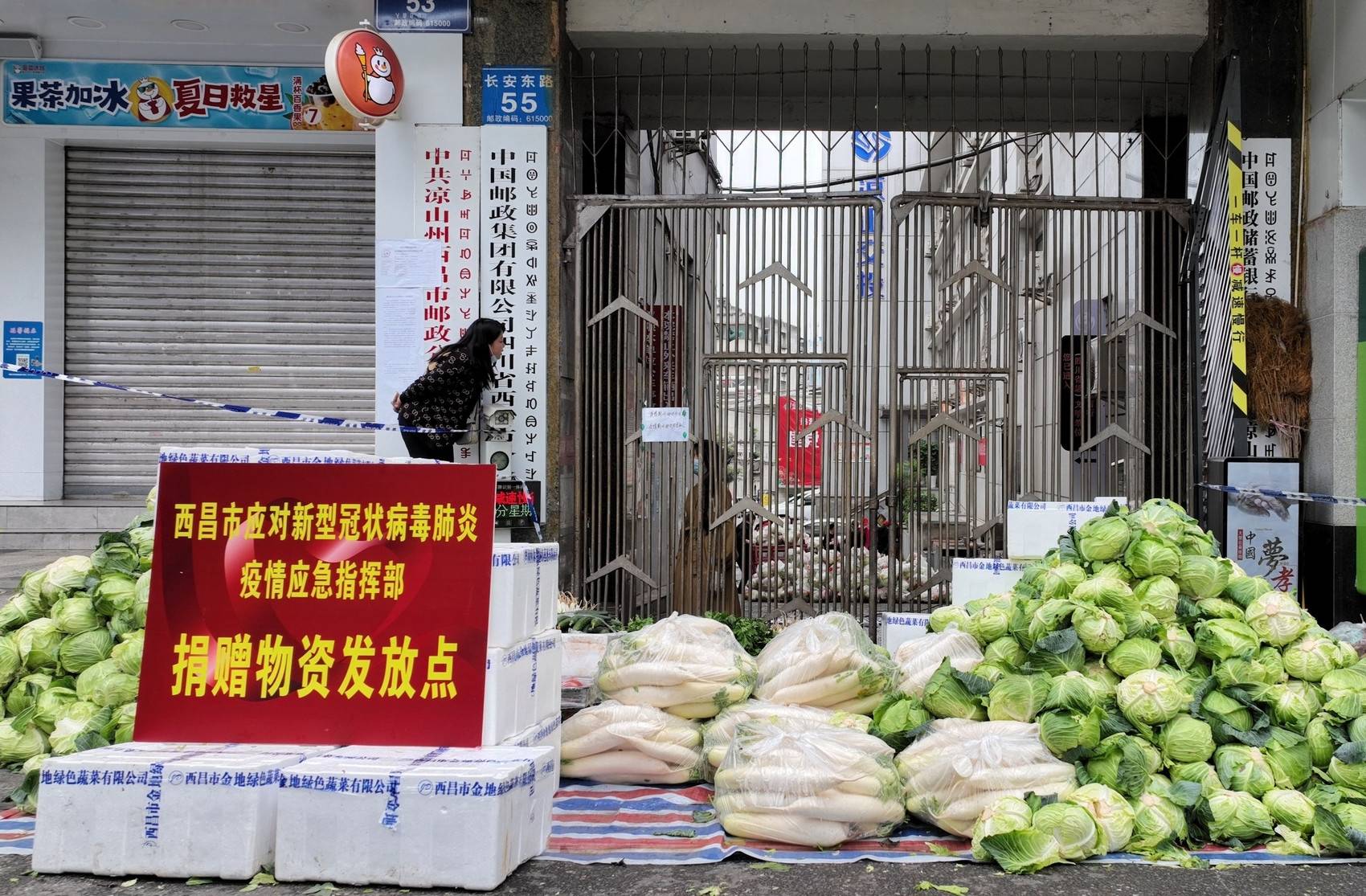 大货车停靠在西昌市长安东路55号小区门前,这是西昌市应对新型冠状病毒肺炎疫情应急指挥部设立的捐赠物资发放点,十几名志愿者忙碌起来,将车上装载的番茄、黄瓜、苹果、白菜等物资一一卸下,再由穿着防护服的“大白”往小区里转运。