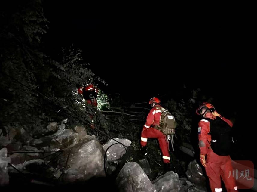 6日凌晨1:30,前突小队徒步向幸福村、跃进村徒步开进过程中,从当地受灾群众口中了解到,有1名当地居民因山体垮塌被困,前突小队立即展开救援。
