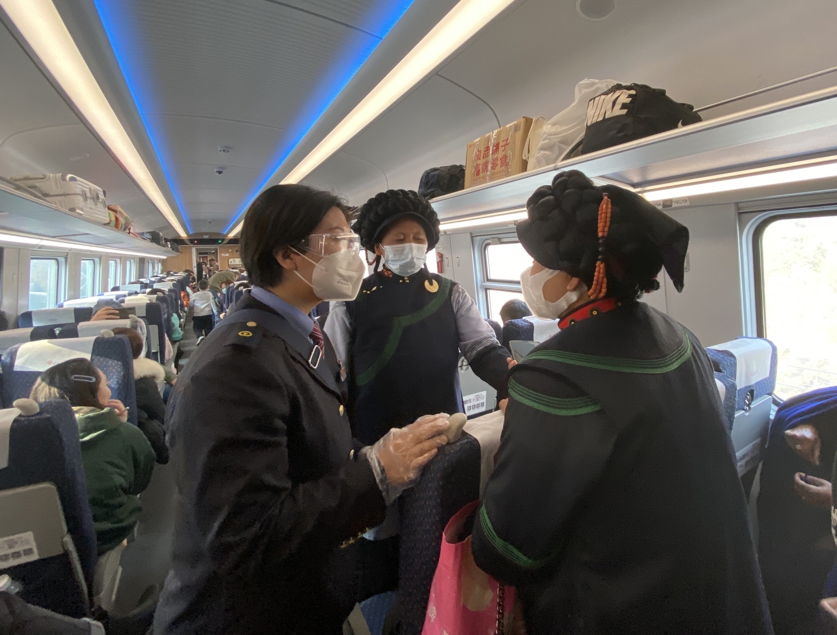 作为乘客,俄来呷呷还记得第一次搭乘动车的场景。刚上车,因为不懂普通话、看不懂票面信息,她找不到座位急得团团转。还好,列车员及时引导,她顺利入座。更让她惊喜的是,了解她是第一次乘坐动车后,“红鹰”班组列车员不时过来问询是否晕车,还送来零食、递上热水。真挚的关心让首次搭乘动车的紧张不安烟消云散。