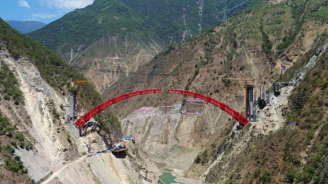 沿江高速控制性工程约乌拉达特大桥主拱圈顺利合龙。
