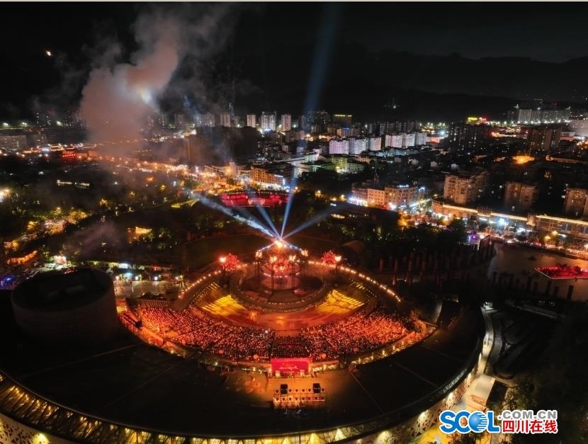8月10日晚,凉山州西昌火把广场上空礼炮齐鸣,流光溢彩的烟花照亮夜空,全场沸腾。当晚,2023年第八届凉山彝族火把节暨夏季清凉凉山游系列活动在此开幕。