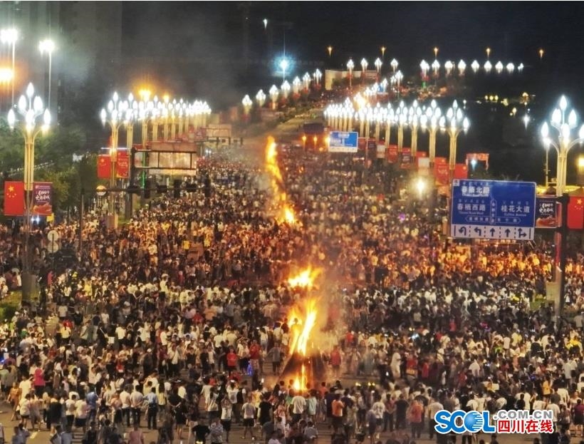 燃烧的火把,照亮了西昌整个夜空,给人们带来了无限的欢乐和美好的回忆。