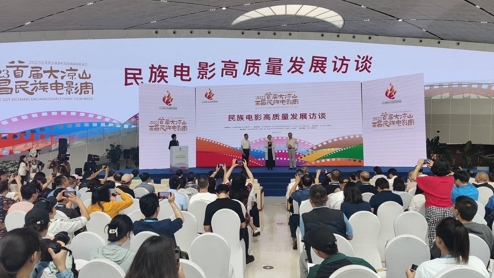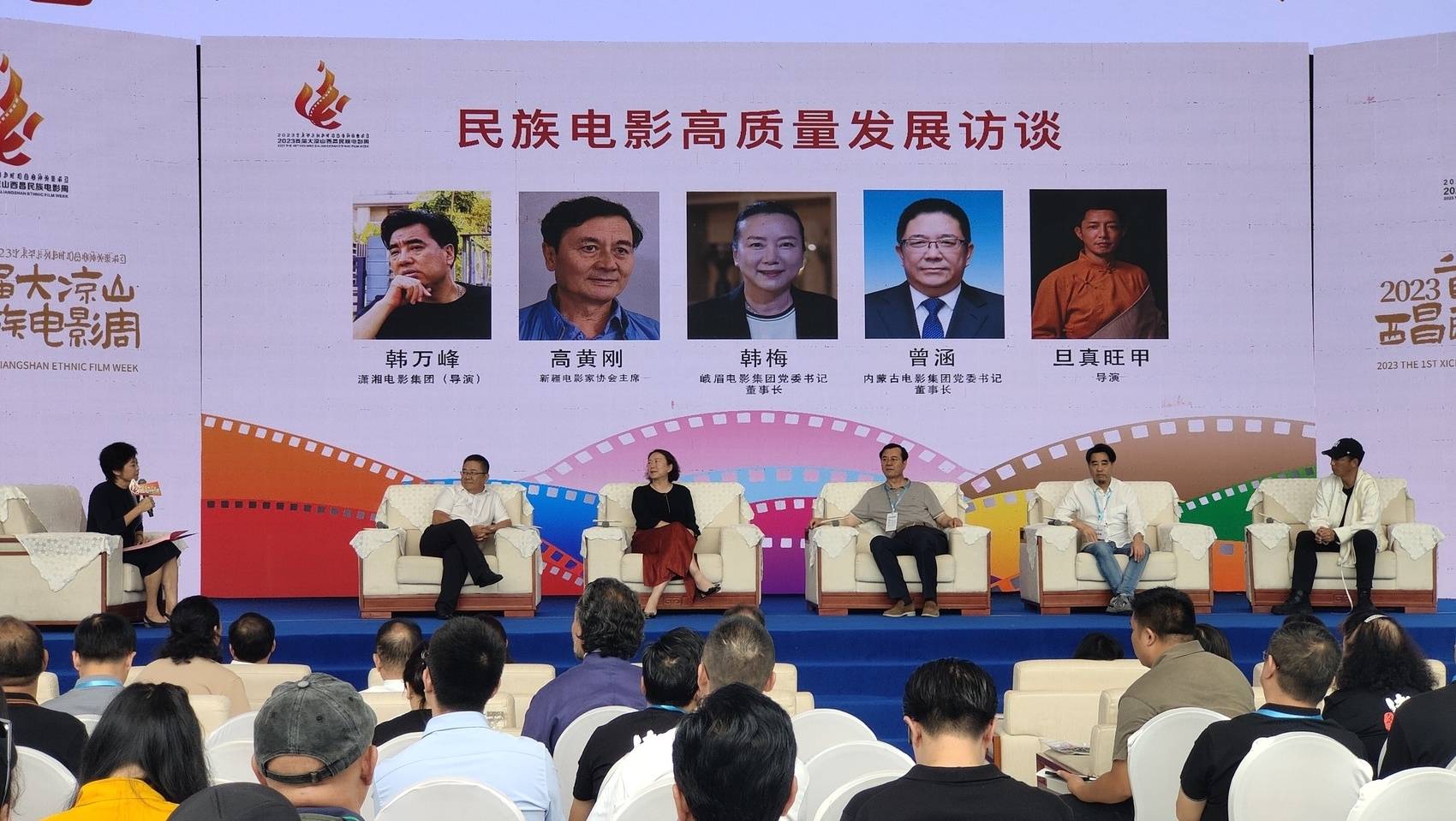当天的访谈,以“铸牢中华民族共同体意识 推动民族电影高质量发展”为主题,多位电影业界知名的制作人、导演、表演艺术家们,通过座谈、讨论、经验分享等形式,共同探讨民族电影高质量发展路径,成为本届电影周光影相聚凉山的思想碰撞。